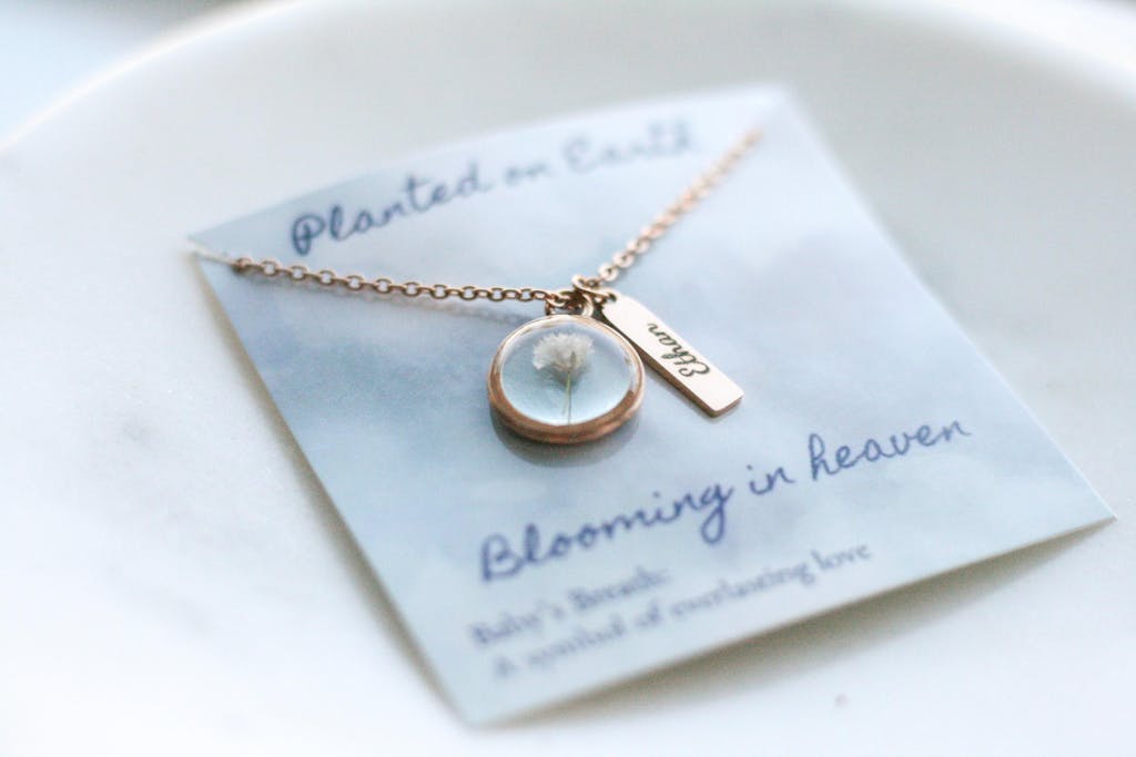 Kellie crafted the most beautiful necklace for me with breast milk from 2 of my children and also hair from one of my other child's first haircut. it symbolizes so much beautiful sacrifice and memories in my motherhood journey. Kellie's attention to detail is so incredible, she takes the time to be sure all her products are top quality. I'll cherish this forever 💓