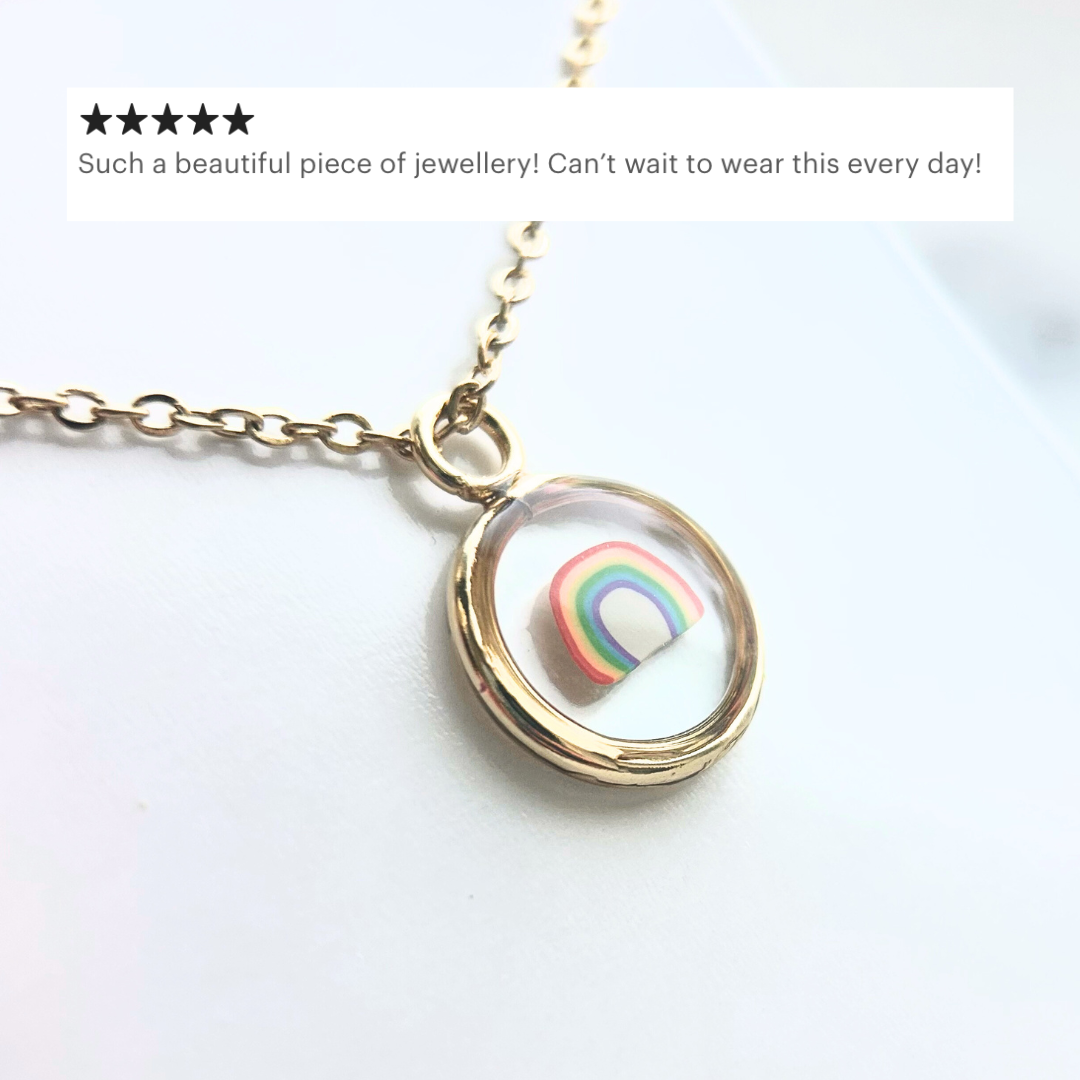 Rainbow Necklace | Yellow Gold Circle Pendant - Sale