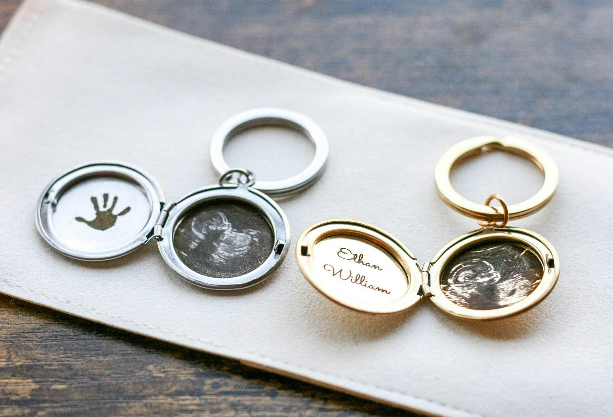Engraved Sonogram Keychain | Circular Locket